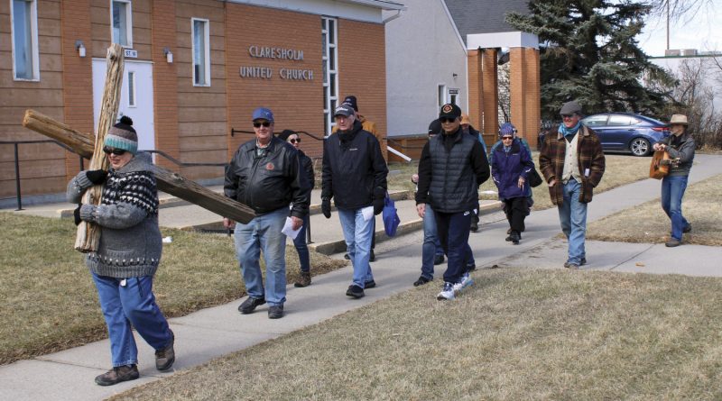 People gathered on Good Friday, April 3, to take turns carrying the cross from church to church on the west side of Claresholm. They stopped at each church to read a part of the story of the crucifixion of Jesus Christ from Scripture, pray for that particular church, and sing a hymn. Here, Joy Eriksson Parisien, leads the procession carrying … Read more…