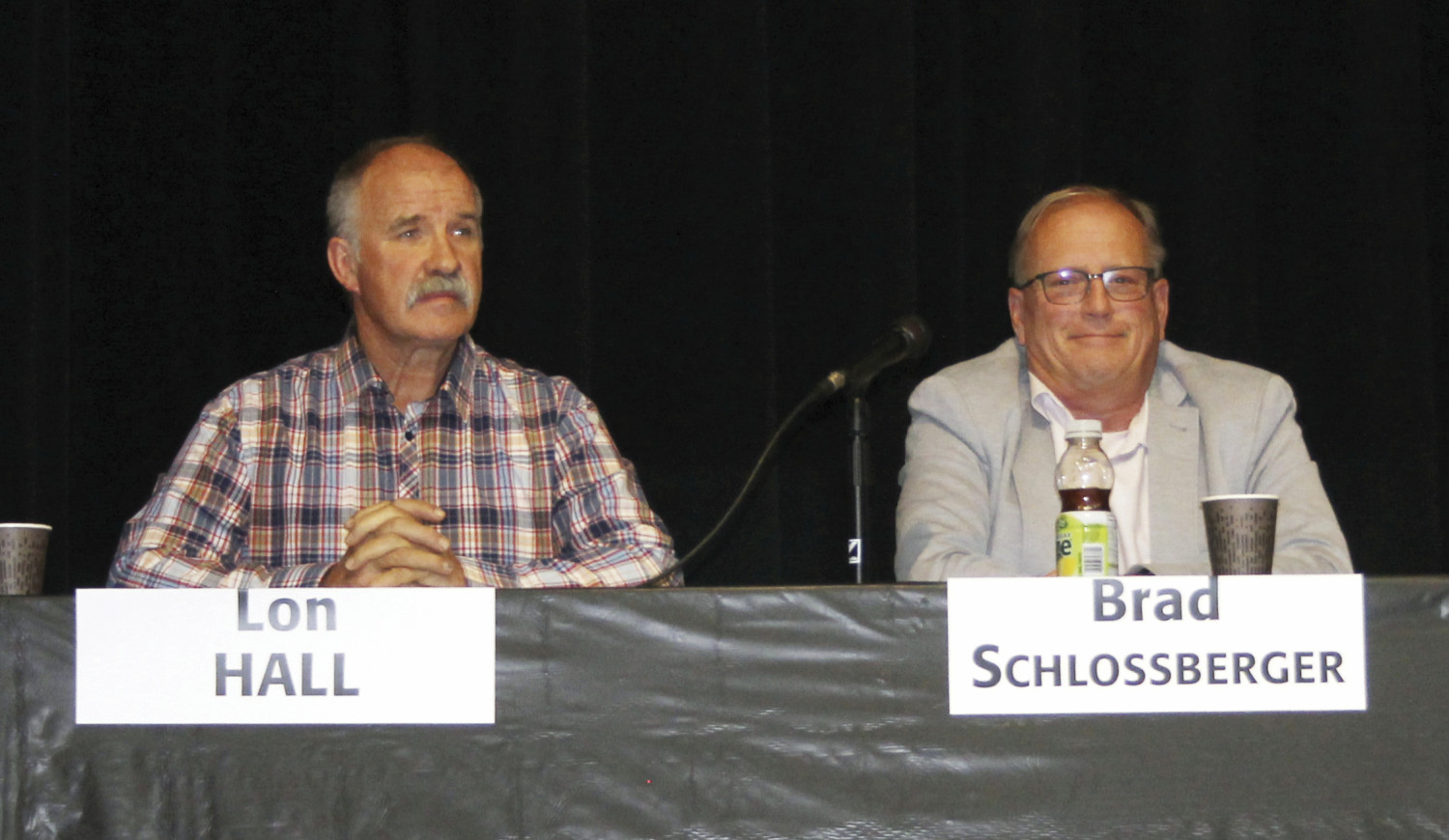 Challenger Lon Hall and incumbent Brad Schlossberger attended a candidates forum the Claresholm and District Chamber of Commerce and the Claresholm Local Press hosted at the Claresholm Community Centre on Oct. 8.