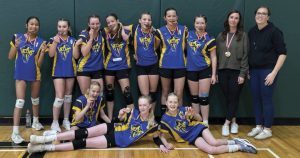 The Willow Creek Composite High School junior high “B2” girls’ volleyball team, pictured above, took third place at the league post-season tournament in the Crowsnest Pass on Nov. 7 and 8. The “B1” girls advanced all the way to the final to take second place. Photo submitted