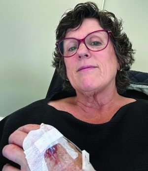 Claresholm’s Barb Kemery has non-hodgkin’s lymphoma, a blood cancer. Her cancer affects the B-cells which are responsible for making antibodies. Moreover, Rituximab, the chemotherapy drug given to Kemery, destroys normal B-cells along with cancerous ones. Consequently, Kemery’s immune system is too weak to protect her, so she receives intravenous immunoglobulin because she has low antibody levels. Intravenous immunoglobulin boosts her immune system passively, because her body does not make antibodies, it just uses them. This helps reduce or prevent the frequency or severity of infections.