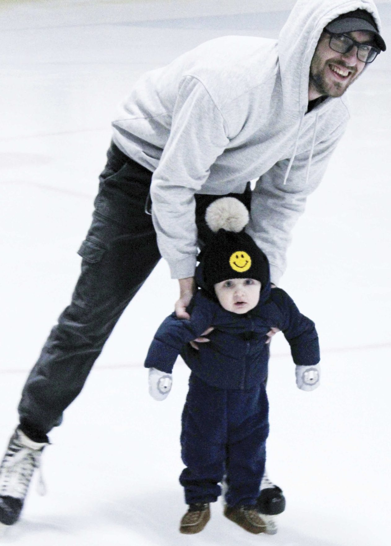 The Town of Claresholm hosted its annual New Year’s Eve skate on the afternoon of Wednesday, Dec. 31. Here, Kevin Keegan goes for a skate with his son Ryker. Photo by Rob Vogt
