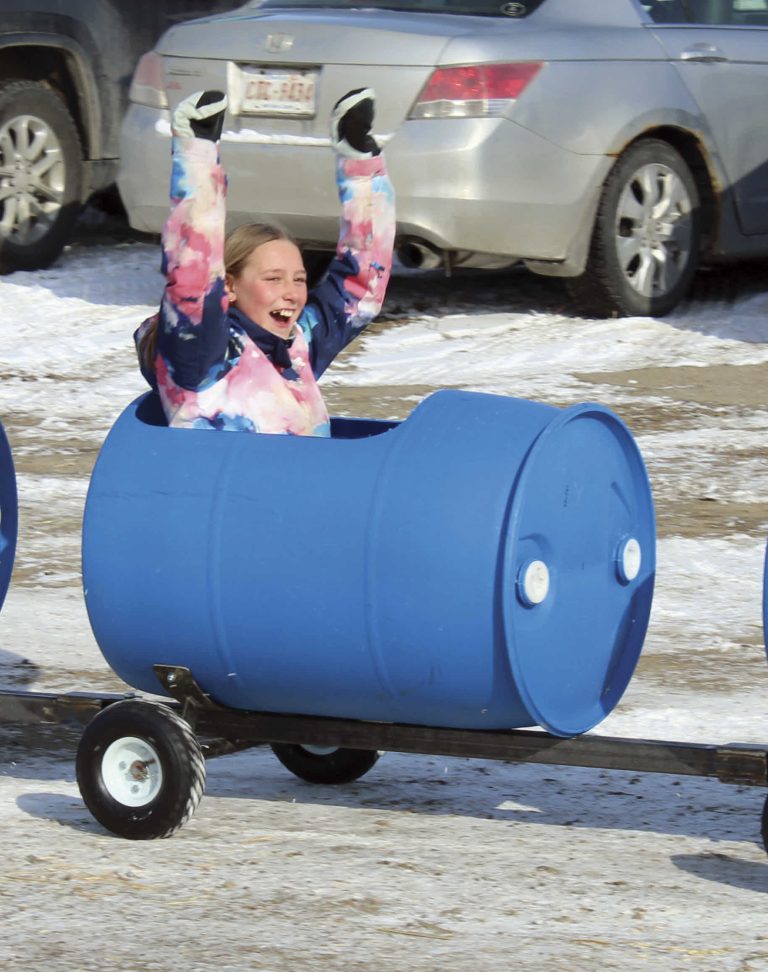 The Claresholm Community Centre was the place to be on Saturday, Feb. 21 as Winterfest took centre stage with a variety of things to see and do. Clockwise from left are Lincoln Groves playing some ball hockey in the parking lot; Penny McClung enjoying a ride on the water bucket train; Lore Welke having fun on the snow pile; and the fireworks topping off a great day of fun. For full coverage please see page eight. Photos by Rob Vogt