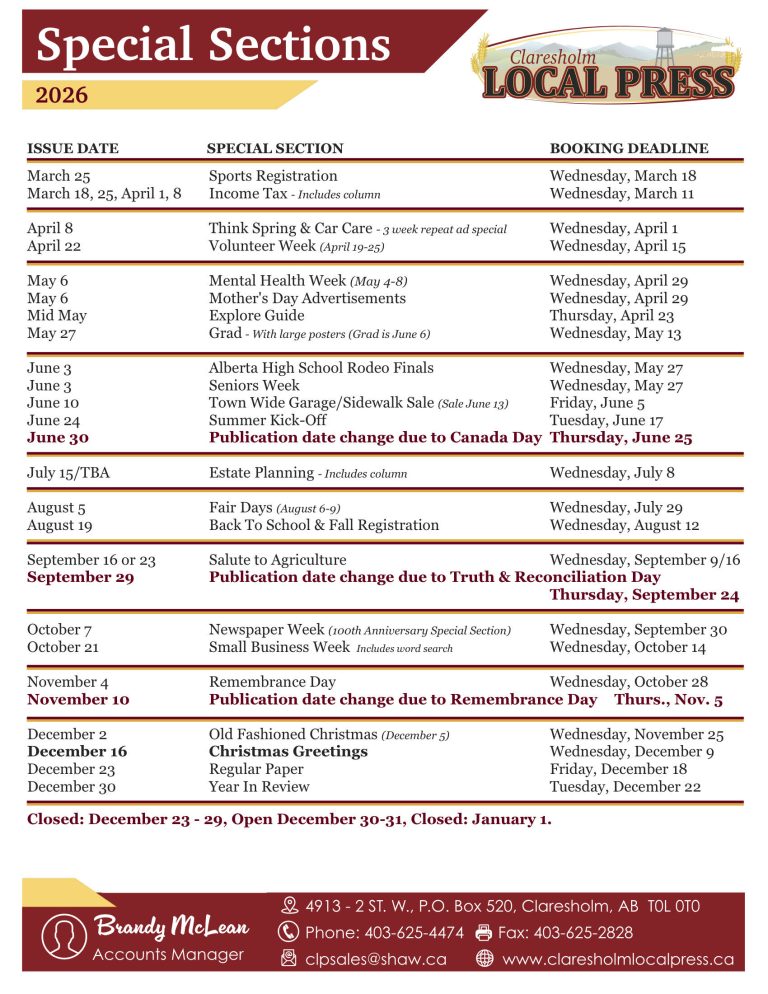 Please scroll down to see the different options and rates we have available at the Claresholm Local Press, or feel free to contact us in order to discuss what the best approach for your budget and business type might be!
