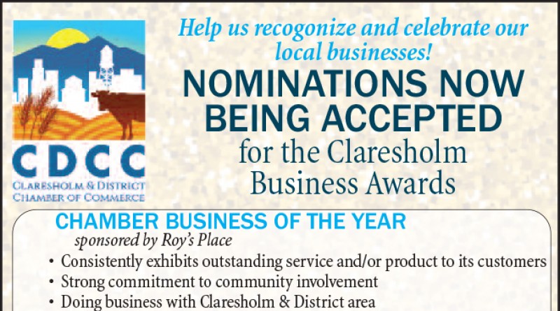 By Rob Vogt, Local Press Writer The business awards are back and the Claresholm and District Chamber of Commerce is accepting nominations. “We want to celebrate the business community’s achievements and recognize all the hard work that is done by our businesses,” said Amanda Zimmer, president of the chamber of commerce. New this year is the best new chamber business award. … Read more…